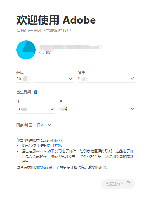 点击创建账户,创建完成并登录软件,重启一下Adobe软件。
